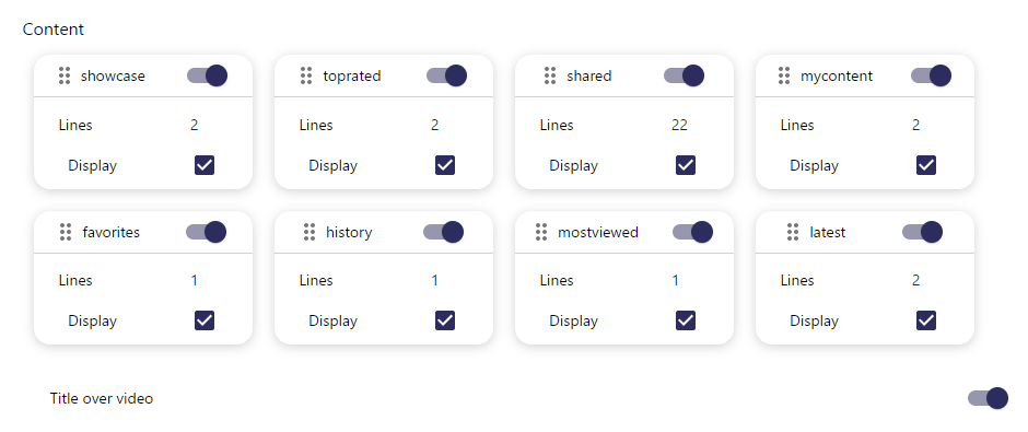 Display is used to add the feature to the hamburger menus. All personal features are placed in the right-side menu (avatar). These are My content, Shared, favorites, history etc
